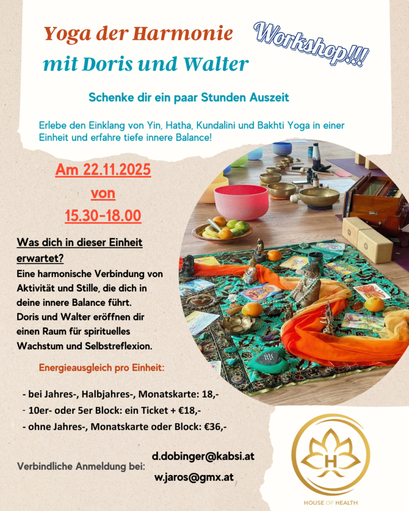 Das Lymph- und Gesundheitszentrum Vösendorf hat sich mit dem House of Yoga zusammengeschlossen – und so das House of Health gegründet. Gemeinsam schlagen wir ein neues Kapitel auf! Ab sofort sind wir in Wiener Neudorf, Triester Straße 14, (direkt im Studio, beim goldenen Buddha links) für euch da und freuen uns, euch in unseren neuen, Räumlichkeiten willkommen zu heißen. Freut euch auf ein vielfältiges, stetig wachsendes Angebot für Körper, Geist und Gesundheit – alles unter einem Dach.