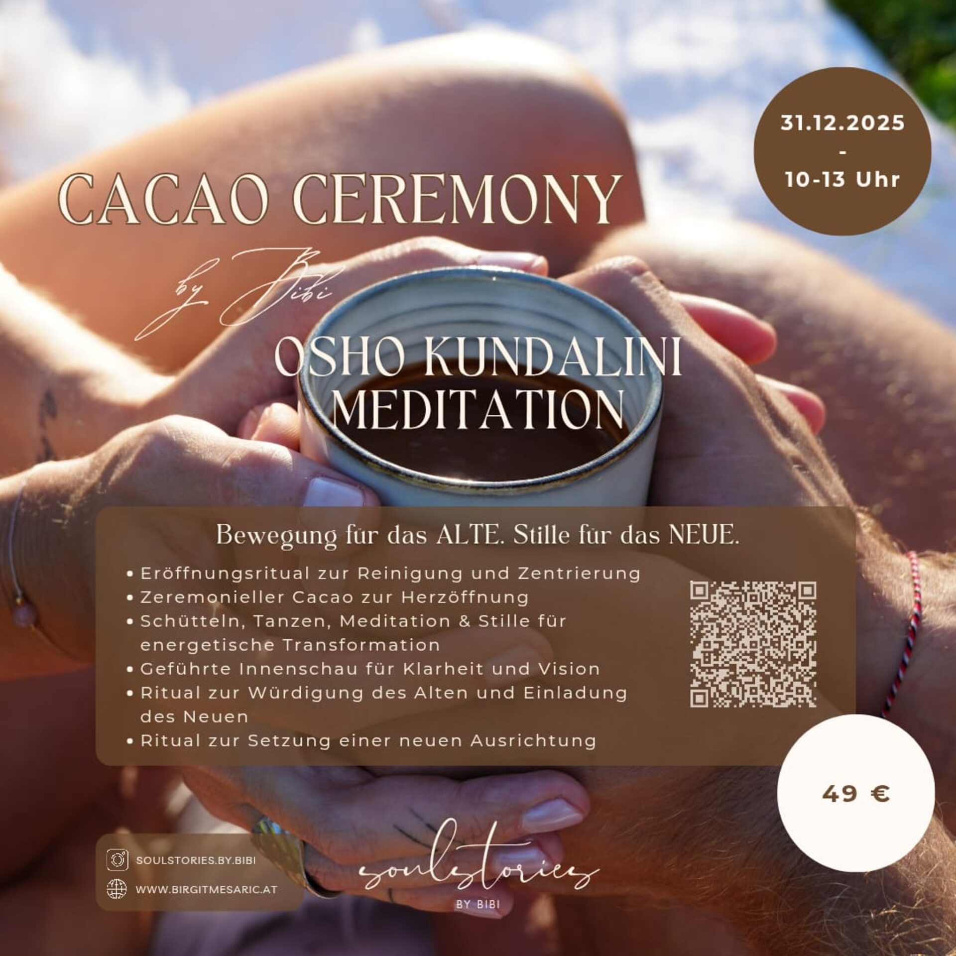 Die Kombination aus Cacao Ceremony und Osho Kundalini Meditation ermöglicht es, innere Bewegung und stille Reflexion miteinander zu verbinden.